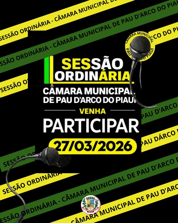 A Câmara Municipal de Pau D’Arco do Piauí convida toda a população para participar da Sessão Ordinária, que será realizada no dia 27 de março de 2026, destacando a importância da participação popular no acompanhamento das atividades legislativas.